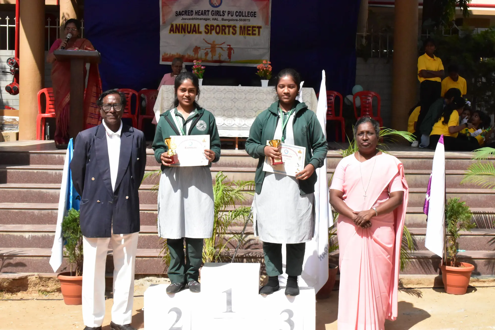The meet was inaugurated by Mr. Yesudass Casperraj, Physical Director and Organizer, Bangalore Archdiocesan Sports Association. Rev. Sr. Janet Sudha, Principal, presided over the programme, and Rev. Sr. Mary Clara P, Correspondent, encouraged active student participation.