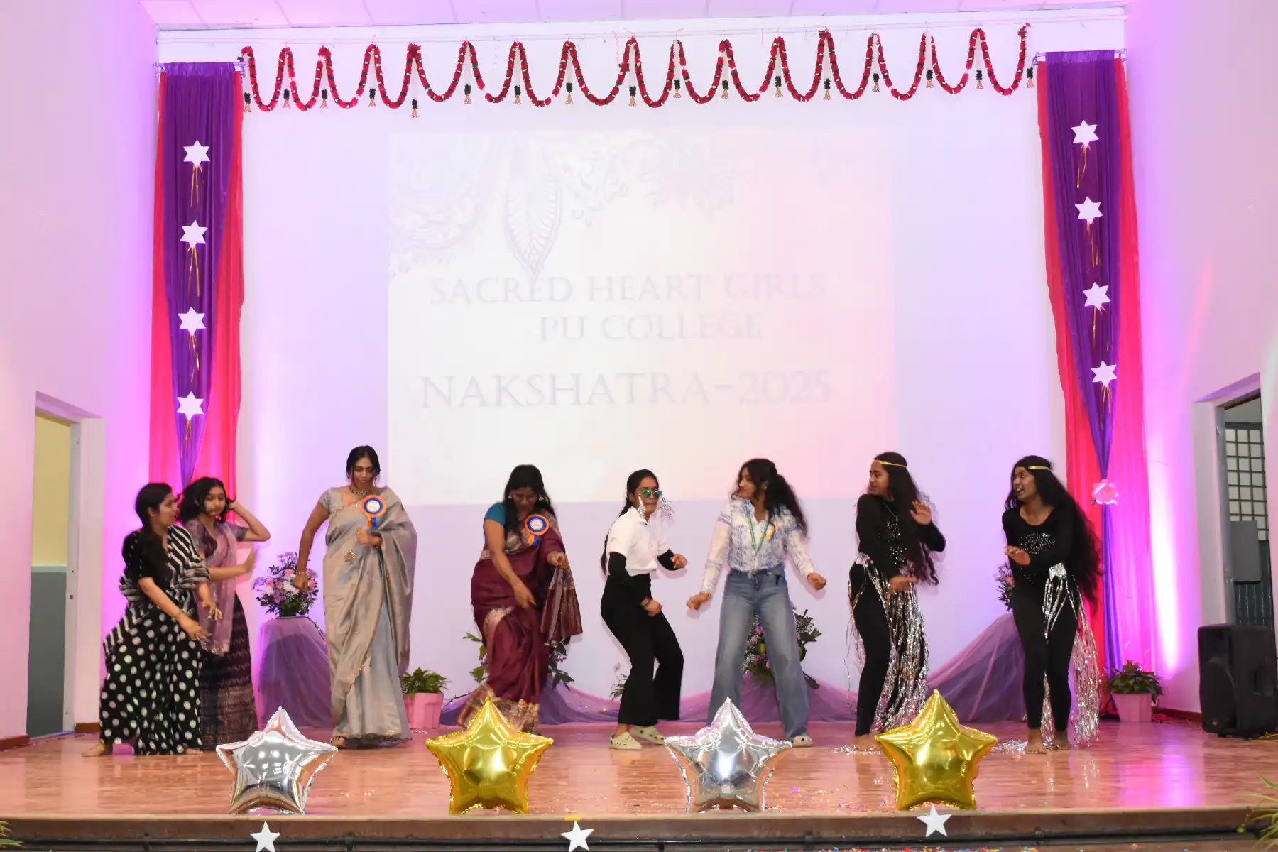 The program began with a traditional welcome dance, followed by the welcome speech, the Chief Guest’s address, the Principal’s address, and the formal declaration of Nakshatra 2025.